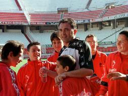 Ahora, cuando aparece en los medios lo hace con una carpeta bajo el brazo, desempeñando su labor de directivo -recientemente se le pudo ver en la multitudinaria manifestación de la afición verdiblanca pidiendo la marcha de Lopera-. Pero la imagen con la que permanecerá en nuestra memoria es correteando el terreno de juego con las medias bajadas, y con una carrera tan irregular como inagotable.