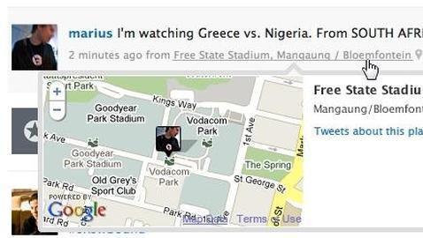 'Twitter Places' permitirá así etiquetar tweets con lugares específicos, incluyendo todos los estadios de la Copa del Mundo en Sudáfrica, y crear nuevos lugares de Twitter. También es posible hacer click en un lugar dentro de un tweet para ver otros mensajes recientes de un lugar determinado.