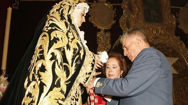 En la noche del martes, el General González-Gallarza, acompañado por el Hermano Mayor y la Camarera de la Virgen, imponía su fajín de General a Nuestra Señora de los Dolores en su Soledad Coronada.