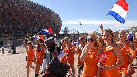 Barbara y Mirthe estaban entre las 36 mujeres que fueron expulsadas del "Soccer City" de Johannesburgo en el partido entre Países Bajos y Dinamarca por "publicidad encubierta"