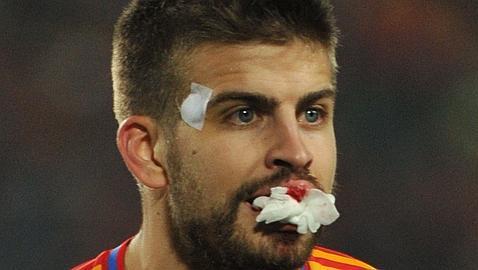 Piqué, con sus heridas de guerra del primer partido en la sien, se llevó un balonazo en la flor que nos hizo daño a todos. El defensa del Barça protagonizó la imagen del partido. En la segunda parte otra suela adversaria le golpeó la cara, como contra Suiza en el gol, y el resultado fue un parte con contrarios. Atendido en la banda, escupiendo sangre por la boca, terminó el encuentro con un apósito en el labio que le confería un aspecto de jugador de otra época.