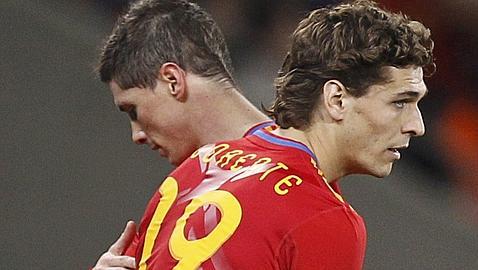 Centro del campo. En la primera parte, el problema de la selección. Dos soldados para la misma función (Busquets y Xabi Alonso) que desconectan a Xavi del juego que nos hizo campeones, el tiqui-taca. El cerebro barcelonista funciona demasiados metros por delante de la posición que le permite ver el campo en panorámica y empezar a construir con sentido. Iniesta tampoco lo encontró en la primera parte y en consecuencia, el fútbol de España fluyó denso, sin claridad.