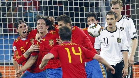 La selección española ha batido, tras el partido ante Alemania, su récord de minutos sin encajar un gol en una fase final de un Mundial. Hasta el momento, el guardameta Iker Casillas acumula 313 minutos sin recibir un gol, ya que desde que el chileno Rodrigo Millar marcó en el minuto 47 del partido España-Chile, la selección no ha recibido otro tanto. Tras esos últimos 43 minutos de partido, España completó sus dos siguientes encuentros con dos victorias por 1-0 ante Portugal en octavos de final, contra Paraguay en cuartos y contra Alemania en la semifinal.
