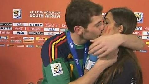 Al finalizar el encuentro, a Iker se le ha notado esa presión sacada de encima a golpe de victoria cuando se ha encaramado sobre sus compañeros y ha alzado la Copa que les acredita como campeones del mundo. En la ronda de preguntas junto al vestuario, donde tras el partido de Suiza arreciaron las críticas y hasta una portada del «Times» cuando la periodista de Telecinco Sara Carbonero le preguntaba a su pareja qué había fallado para perder por 0-1 frente a la selección helvética, hoy Iker ha visto cómo se repetía la estampa. Y no estaba dispuesto a dejarlo pasar. A que se repitiesen también los nervios y las palabras sacadas por compromiso.