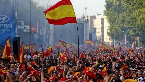 Un ciudadano comentaba ayer, acompañando a la Roja en los fastos por todo Madrid, que si Zapatero comienza el próximo Debate sobre el Estado de la Nación -que se celebra mañana y pasado en el Congreso- con un «España va bien... al menos en el fútbol» dejaría de escuchar el debate. Esta frase, que forma parte del anecdotario de una jornada repleta de alegría en las calles de Madrid, da mucho más que pensar. ¿Ha contribuido la victoria de España en el Mundial de fútbol de Sudáfrica a rehabilitar la marca de la nación fuera y dentro de nuestras fronteras? ¿Un triunfo así tapona o esfuma en la psicología colectiva de la ciudadanía el pesimismo reinante por el estado actual de la economía?