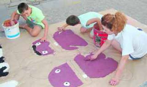 Y pasar la hora de la siesta en la calle tiene un cometido muy especial: engalanar el suelo de los dos kilómetros de calle que separan la Iglesia de mil colores para que el patrón de la localidad procesione entre una auténtica mare de sal de colores. Y es que, los niños, jóvenes y no tan niños, se organizan en grupos de seis o siete para realizar alfombras de colores de dos por tres metros de longitud sobre papel continuo que facilita el Ayuntamiento para colorear la calle que va de la plaza de la Villa hasta la ermita de San Roque.