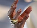 Un gesto del Papa mientras hablaba para los periodistas en el avión hacia Edimburgo