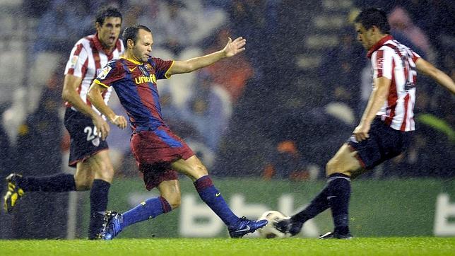 Los pitos recibidos por Andrés Iniesta tras la jugada hacen dudar al entrenador del Athletic Club, Joaquín Caparrós, de que la tarjeta roja mostrada por el colegiado Mateu Lahoz a Fernando Amorebieta, por una entrada al jugador albaceteño, haya sido merecida.