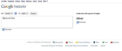 En concreto, cuando un usuario decide traducir la frase 'Quiero ser libre' -con 'Q' mayúscula- del español al inglés, la herramienta de Google ofrece una respuesta distinta a la esperada. 'Miner' -que en español significa minero- es el resultado de esta pregunta a Google Translate.