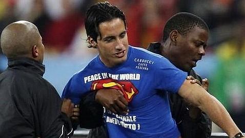 Mario Ferri ya se cruzó en el camino de España durante el pasado Mundial de Sudáfrica, cuando saltó al campo durante la semifinal entre la selección de Vicente del Bosque y Alemania. Ferri portaba una camiseta con el símbolo de Superman y una reclamación: ver a Antonio Cassano en la selección italiana.