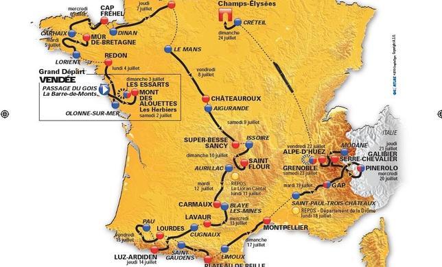 La montaña será suculenta por variada y prolífica. El suave Super Besse en el Macizo Central, los tremendos Luz Ardiden y Plateau de Beille en los Pirineos, el largo ascenso a Pinerolo en la frontera con Italia, la llegada a la cómoda estación de Serre Chevalier y el siempre imponente Alpe d'Huez. Mucha montaña y el Galibier protagonista. Se escalará dos veces en el tránsito alpino por sus dos vertientes, el interminable flanco oriental y el corto trayecto desde el Lautaret.