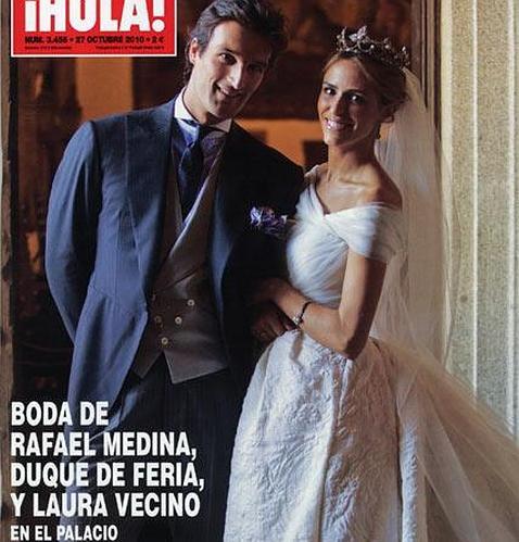 Por fin sale al quiosco las imágenes de la «boda del año»: la de Rafael Medina y Laura Vecino en Tavera (Toledo) el pasado sábado. Aunque las revistas del corazón salieron ayer con las imágenes de algunos invitados a la ceremonia, tanto los novios como la madrina, Naty Abascal, guardaron celosamente las imágenes más esperadas, que aparecen hoy en exclusiva en la revista «¡Hola!».