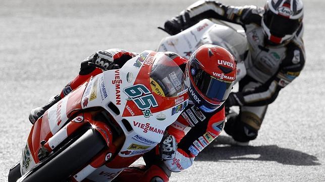 Como ellos, el español Carmelo Morales (Suter) doblegó a Talmacsi y al suizo Dominique Aegerter (Suter) para intentar cazar a la pareja Bradl/Baldolini, pero entró muy pasado en una curva y al intentar rectificar acabó por los suelos. Morales arrancó su moto y continuó en carrera, aunque en la vigésimo primera posición, justo por delante de otro accidentado, el colombiano Yonny Hernández.