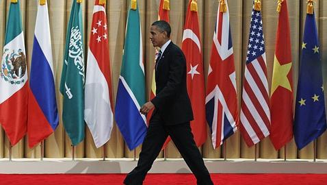 Barack Obama, a su llegada a la cena de apertura del G-20.