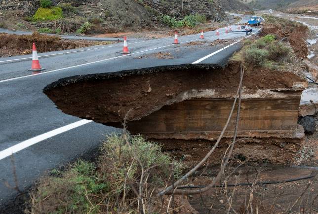 Asimismo, las carreteras de acceso a Ajuy desde Pájara (FV-621) y Cardón-Marcos Sánchez (FV-608), también se vieron afectadas por desprendimientos. El servicio coordinador de emergencias también gestionó avisos de particulares relacionados con inundaciones en viviendas y bajos comerciales o caídas de escombros sobre vehículos aparcados. Ya en Gran Canaria, los desprendimientos causados por la lluvia obligaron a Obras Públicas a cerrar a la circulación la GC-200, entre Agaete y La Aldea; GC-231, entre Valle de Agaete y El Sao; GC-605, entre Ayacata y Mogán; y la GC-210, que conecta Artenara y Tejeda. Mientras, en la capital grancanaria, el Ayuntamiento calculó en medio millar las actuaciones realizadas por los efectivos municipales relacionadas con la ventisca. Las zonas más afectadas fueron las de La Puntilla, La Isleta y Siete Palmas, donde el viento afectó con dureza a ventanales y vallas, y en la zona de Marzagán-Los Hoyos por la gran cantidad de agua que calló en este sector.