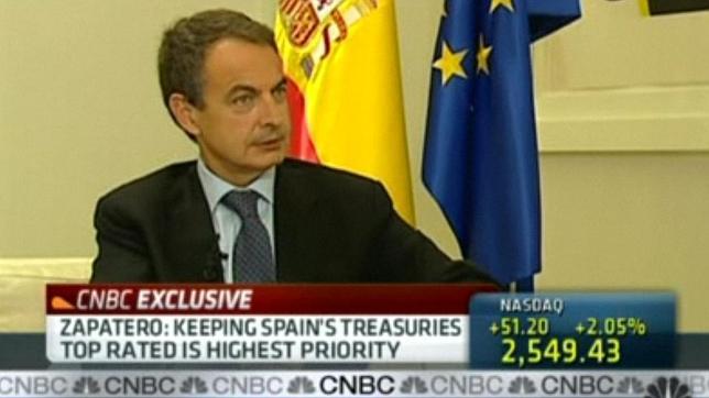 «España volverá a crecer el próximo año e, incluso, podría ser uno de los que más lo haga de la Unión Europea», aseguró hoy el presidente del Gobierno, José Luis Rodríguez Zapatero en una entrevista concedida a CNBC, la cadena de información financiera de referencia en Estados Unidos. Además, el presidente del Gobierno garantizó que no habrá ningún recorte de valor en la deuda pública. "Hay algunos análisis que dicen que, con la implantación de las reformas que se han puesto en marcha, en 2011-2012 España podría ser uno de los países que registre mayor crecimiento en la Unión Europea". Concretamente, el jefe del Ejecutivo citó informes del Fondo Monetario Internacional (FMI) y de JPMorgan, y apuntó que en ellos se asegura que entre 2011 y 2012 «España será además uno de los países más atractivos para los inversores». Zapatero ha adoptado, además, una postura desafiante, diciendo que ejecutó todas las medidas posibles y que los inversores que apuesten en contra de España y el euro, perderán.