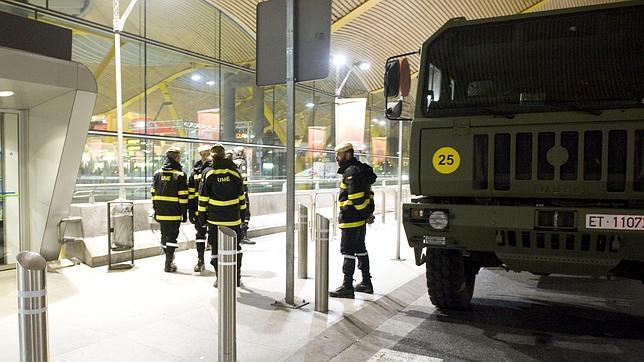 Sin armas, con cajas de mantas y botellas de agua (fresquita). Así llegó a la Terminal 4 del aeropuerto de Barajas el Ejército para atender la situación generada por la huelga de controladores. "Nuestra misión es atender a las personas que se queden esta noche en el aeropuerto. Repartiremos las mantas, el agua, también hay una zona de descanso habilitada para los pasajeros donde tienen bocadillos y les pueden atender personal sanitario", relata el coronel Montenegro,al mando del grupo de militares de la Unidad Militar de Emergencias (UME) que, con base en Torrejón de Ardoz, ha desplegado a 25 soldados en el aeropuerto de Barajas.