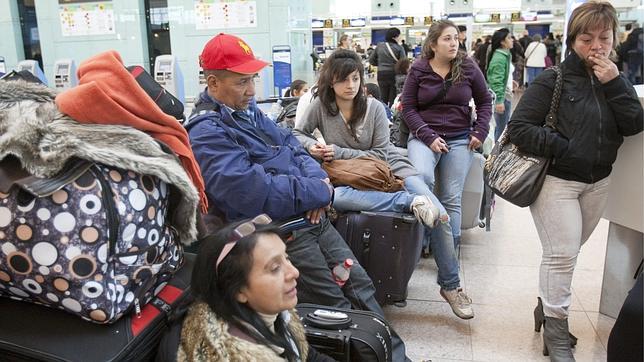 Las caras de cansancio, la indignación y los llantos se suceden entre los pasajeros que permanecen en el punto de información de Aena, que no piden el reembolso de sus billetes sino poder volar hacia su país de origen. Unos iban a presentar a su niña recién nacida a sus familiares, otros pretendían asistir a un bautizo, otros querían estar con su madre a quien operan por estas fechas y la mayoría, simplemente, pasar con sus seres queridos las Navidades.