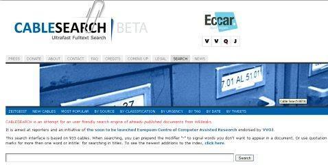 Cablesearch es una iniciativa del Centro Europeo de Investigación y permite a los usuarios buscar información dentro de los 933 informes publicados por WikiLeaks hasta el momento. Las búsquedas permiten localizar palabras concretas en los informes y eliminar términos de los resultados.