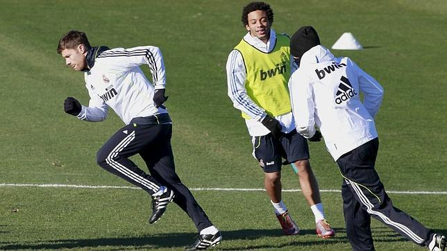 El resto de la sesión estuvo marcada por la participación de Sami Khedira, que parece haber superado completamente una contusión en el músculo tibial anterior de la pierna derecha. El germano regresará al once titular frente al Sevilla y busca acompañante en la medular por la baja por sanción de Xabi Alonso.