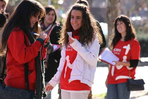 Los jóvenes que preparan la Jornada Mundial de la Juventud no descansan ni en plenas fiestas navideñas. Más de 500 voluntarios, vestidos con la camiseta roja de la JMJ, han visitado este miércoles el campus de la Universidad Complutense de Madrid para animar a los jóvenes a donar parte de su tiempo libre en alguna actividad de ONG's como Cáritas, el Banco de Alimentos o cualquier institución que trabaje en cooperación al desarrollo.