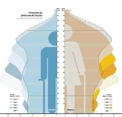 A muchos españoles les gusta conocer su futuro individual. Los adivinos hacen fortuna, quizá porque mucha gente está ávida de buenas noticias. Pero cuando se trata de pronósticos colectivos, la duda planea sobre los resultados y el argumento del «cuán largo me lo fiáis» nos distancia anímicamente del porvenir. Un alejamiento al que contribuye con celo la clase política, preocupada sobre todo por los (duros) azares del presente. Sin embargo, saber qué va a ser de nosotros, como ciudadanos y como país, es una tarea esencial. Y a ello contribuyen las proyecciones demográficas, que son simples aproximaciones a una realidad cambiante sobre la que estimamos las demandas futuras de formación, salud y otros consumos de bienes y servicios. Las proyecciones más solventes son las del INE, que las confecciona para un plazo largo (entre 50 y 80 años) y para periodos más cortos (10 años). Utilizaré la última de cada clase, aparecidas este mismo año, para plantear mis reflexiones.