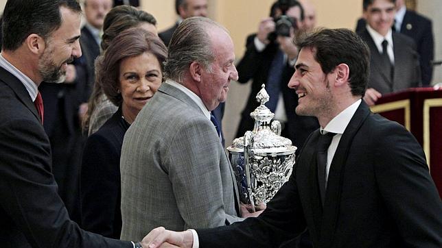 "Ha sido bonito y emotivo. Todo lo que sea recoger premios por lo que ha hecho la selección en su día es agradecido", señaló el internacional, que no quiso hablar de la actualidad del Real Madrid. Sí lo hizo con don Juan Carlos. "Hemos hablado de la selección, un poco a nivel de clubes y me ha deseado mucha suerte para lo que queda de temporada. Si Dios quiere, ojalá nos veamos en Valencia en la final de Copa", confió el portero.
