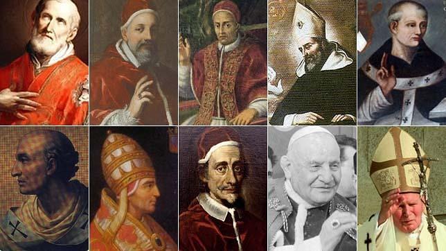 - Inocencio XI (1676-1689): el Pontificado de Benedetto Odescalchi se caracterizó por los esfuerzos para bajar los gastos de la Curia, lo que le llevó a vivir de manera austera y a intentar que cundiera el ejemplo en otros cardenales. Pocos años después, logró que los ingresos superaron a los gastos. Su proceso de beatificación duró, al contrario que el de Juan Pablo II, siglos: se inició en 1714, pero Francia lo suspendió en 1744, retomándose en el siglo XX debido a nuevos hallazgos sobre su persona. Fue Pío XII quien lo beatificó el 7 de octubre de 1956, en una celebración que ABC cubrió ampliamente.