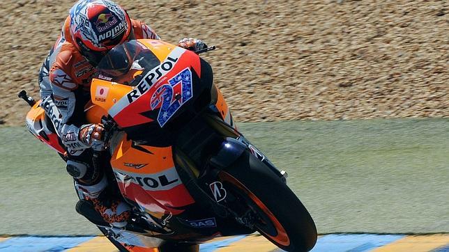 El australiano Casey Stoner (Honda) ha logrado la pole en el circuito de Le Mans, donde este domingo se disputará el Gran Premio de Francia, en unos entrenamientos oficiales en los que los españoles Dani Pedrosa (Honda) y Jorge Lorenzo (Yamaha) fueron cuarto y quinto, respectivamente. [Resultados en pdf]