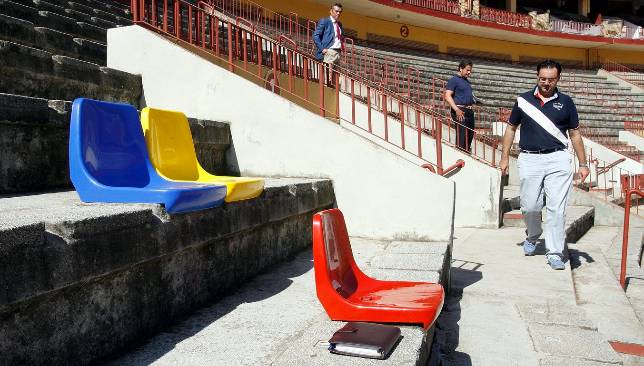 Las sillas sólo se instalarán en la zona de los tendidos, correspondiente a las entradas de primera y segunda categoría, según confirmó ayer a este diario la empresa instaladora. Los dos balcones del Coso de los Califas, que equivalen a las localidades de tercera y cuarta categoría, no tendrán asientos. Un detalle que no se conocía antes de la venta de los abonos de la eliminatoria. Por tanto, los espectadores que hayan comprado una localidad de esos precios tendrán que conformarse con el tradicional cemento del recinto taurino y olvidarse del respaldo.