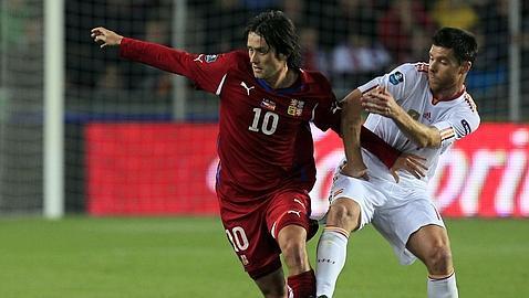 Xabi Alonso padece "una fuerte contusión en la cara interior de la pierna izquierda" tras la durísima entrada que sufrió por parte del checo Tomas Hübschman. "Queda pendiente de evolución", afirmaron fuentes de la selección española. El tolosarra fue el autor del segundo gol del combinado español, aún en la primera mitad.