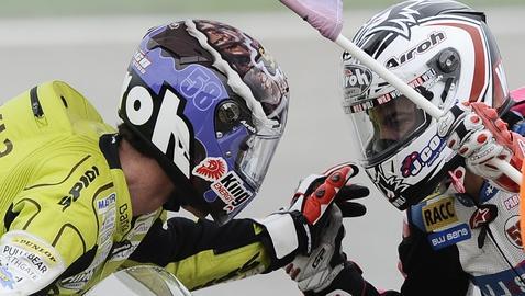 Había nerviosismo en el equipo de Terol por el peligro de la lluvia. A Nico nunca se le dio bien el agua. Y Zarco es un especialista. El francés debía poner tenso al piloto de Aspar para intentar conquistar el Mundial de 125cc. Y rodó por los suelos en su ansiedad por acercarse a los primeros puestos. Johann perdió sus opciones a los cinco minutos de carrera. La corona era para el español, que redondeó el día de su vida con una remontada desde la novena plaza de parrilla a la segunda posición. Peleó con Viñales por el primer puesto, pero Maverick estaba inaguantable.
