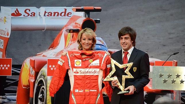 El piloto de Fórmula Uno Fernando Alonso ha sido galardonado este lunes en Madrid con el cuarto Premio Internacional del Deporte de la Comunidad de Madrid, que le ha entregado la presidente regional, Esperanza Aguirre.