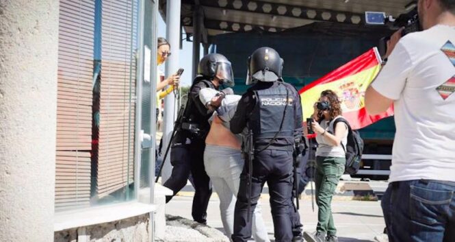 Un detenido durante la protesta de los agricultores en el Puerto de Almería
