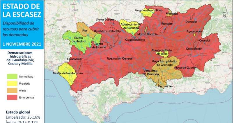En concreto, el presidente de la Confederación Hidrográfica del Guadalquivir (CHG), Joaquín Páez, ha declarado la situación excepcional por sequía extraordinaria en el Sistema de Regulación General y en las otras unidades territoriales de escasez (UTE) que se encuentran en situación de Emergencia a 1 de noviembre: Guadiamar, Hoya de Guadix, Dañador, Sierra Boyera, Rumblar, Guadalentín, Guardal, Guadalmellato, Bembézar-Retortillo, y el subsistema de las Vegas Altas de Granada, Cubillas-Colomera.