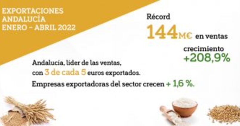 La comunidad andaluza ha alcanzado entre enero y abril de 2022 un nuevo récord de exportaciones de cereales, con 144 millones de euros en ventas al exterior
