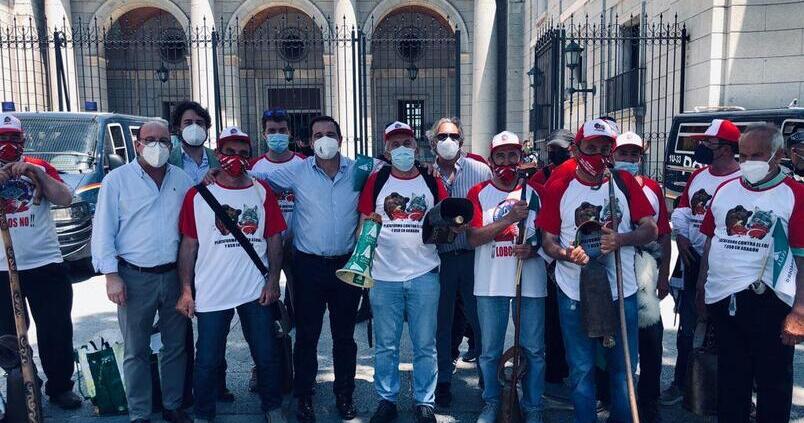 Más de un millar de personas se ha concentrado frente al Ministerio de Transición Ecológica, en Madrid, para mostrar su rechazo ante la protección del lobo