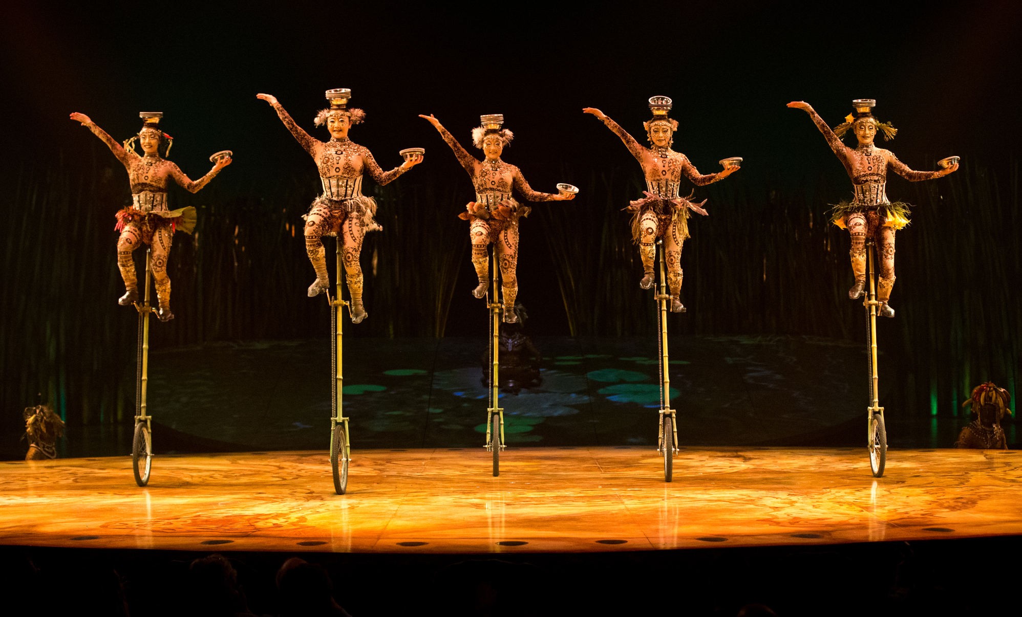 En total, el espectáculo consta de 17 escenas en las que hay ejercicios circenses, proezas acrobáticas, momentos de transición y hasta una dosis humorística ejecutada a la perfección por el payaso ucraniano Mikhail Usov. El número de la española Denise García-Sorta y el italiano Massimiliano Medini, que realizan piruetas mientras patinan o el equilibrismo sobre altísimos monociclos de varias artistas chinas son algunos de los momentos más impactantes del show.