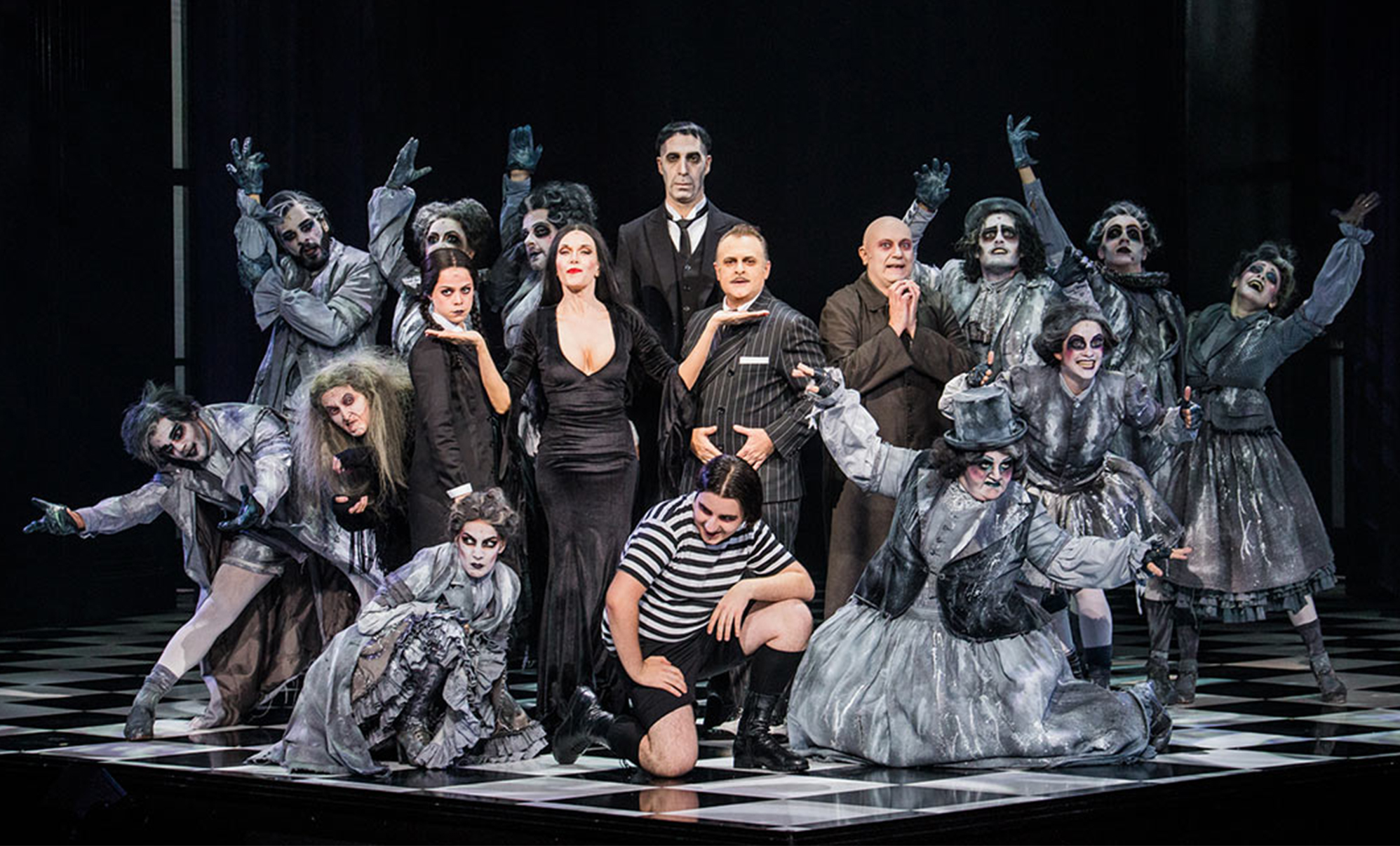 El espectáculo, que estará hasta el día 20 de mayo en el Cartuja Center, traslada a las tablas del teatro los personajes creados por el ilustrador Charles Addams, y está dirigido por Esteve Ferrer y producido por LetsGo Company (Dirty Dancing, The Hole, The Hole 2 y The Hole Zero) con los efectos especiales que ya les caracteriza. La comedia, basada en el libreto de Brickmann y Elice, cuenta con música de Andrew Lippa y comenzó su recorrido por los escenarios en el Ford Center for the Performing Arts Oriental Theatre de Chicago en 2009 y continuó sus representaciones en el Lunt-Fontanne Theatre de Broadway en 2010, consiguiendo un gran éxito entre el público.