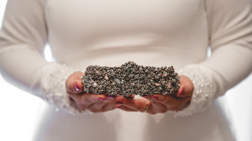 En nuestra nueva colección de novias para 2019, como tendencia presentamos plumas y orfebrería, que nos parece una conjunción perfecta. Además, hemos trabajado mucho con porcelana, creando nuevas formas y reinventando un poco la típica corona de princesa que conocemos.