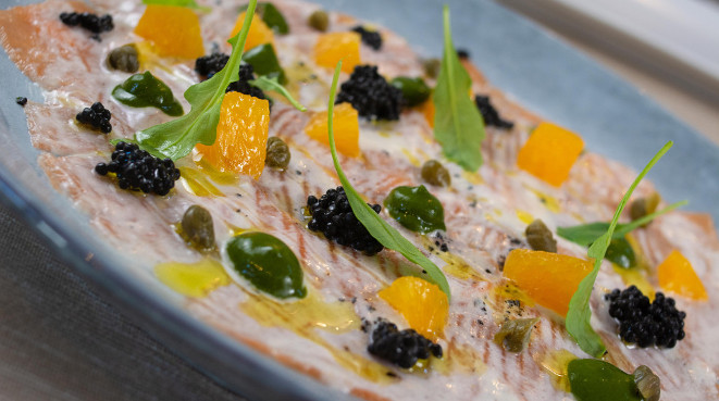 Por supuesto, en estos años la carta de Arte y Solera ha ido cambiando. Mejor dicho: evolucionando. Adaptándose y proponiendo platos con mucha personalidad de la mano de Marco Antonio Paz del Alamo, chef de Arte y Solera, junto a su equipo. Entre las nuevas recetas de esta carta encontramos el carpaccio de salmón con vinagreta de yogur, naranja y caviar; la corvina con puré de apio, nabo y pesto; así como la carrillada de cerdo ibérico con salsa de ciruelas y zanahoria cítrica.