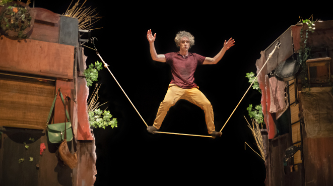 Una combinación de circo-teatro que llega tras 7 años de intenso y exitoso recorrido de esta compañía. Las disciplinas circenses, la extraordinaria interpretación teatral y la música en directo, harán las delicias de todos los públicos para enseñarnos que la fragilidad humana, la ruptura, la soledad y los recuerdos, pueden servirnos de cimientos si sabemos aceptarlos sin aferrarnos a ellos. Dirigidos por Lapso producciones, Sara Ortiz y Albert Moncunill Ferrer nos regalan una reflexión sobre el transcurso de la vida a través del cuerpo, la música y la palabra. Un homenaje a aquellas personas que llegan para quedarse aunque dejen de estar cerca.
