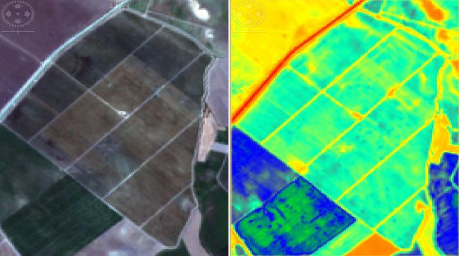 —Teledetección por satélite: plataforma SIG; Índice de Actividad Fotosintética (NDVI); necesidades hídricas del cultivo; mapas de homogeneidad y masa foliar media de parcelas; elaboración de mapas de conductividad eléctrica