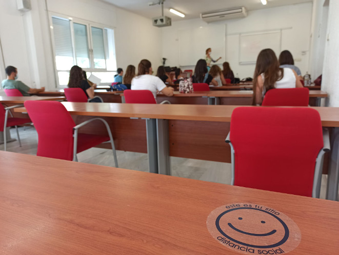 Más de 400 alumnos han regresado esta semana a las aulas del Campus de la Cámara de Comercio de Sevilla, que ha puesto en marcha un exhaustivo protocolo de seguridad para desarrollar una formación presencial con total garantía.
