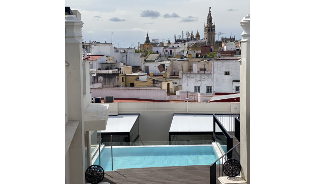 UNUK SOHO es un hotel de cuatro estrellas superior ubicado en el centro histórico de Sevilla, a pocos metros del emblemático edificio Parasol Metropol, y de las famosas Setas de Sevilla. Es, sin duda, el hotel de vanguardia de Sevilla. UNUK SOHO es un hotel innovador, actual y muy confortable, en el que podrá disfrutar de su piscina infinita de agua salada con vistas a la Giralda de Sevilla, su terraza de 360º donde podrá almorzar y cenar relajadamente deleitando platos de su Restaurante Recoveco, así como de la sauna y una variedad de masajes. Todo para el bienestar de sus clientes.