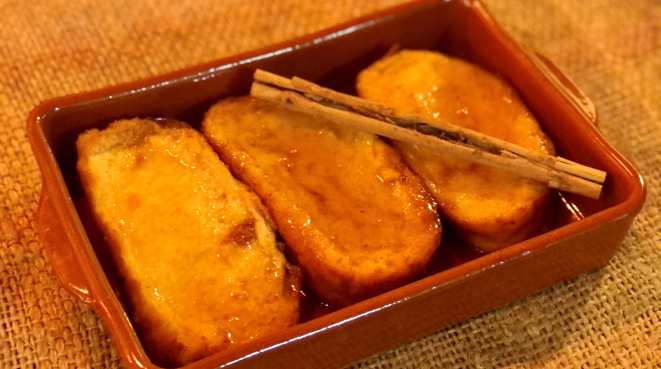 Desde Taberna del Alabardero siguen la receta más antigua y tradicional: pan elaborado haciendo la masa y dejándola reposar para que fermente. «Posteriormente, se hornea, y se reserva hasta el día siguiente para que se asiente la miga. Así, las porciones se bañan en leche con azúcar, canela y pieles de naranja y limón y se empapan para que queden tiernas. Después, se pintan con huevo y se fríen en aceite. Para terminar, se pasan unas por azúcar y canela y se bañan otras en un almíbar de miel», explican desde Taberna del Alabardero.