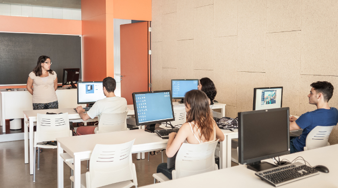 Solo si fuera necesario, y si no fuera posible la presencialidad del 100% del estudiantado, en caso de que continuara la emergencia sanitaria, la Universidad Pablo de Olavide ha preparado un dispositivo de enseñanza dual interactiva, que implica que puedan participar tanto los alumnos desde casa como desde el aula e interactuar entre ellos y con el profesorado, a través de la instalación de un sistema de cámaras, monitores y sonido específico (aulas de aprendizaje dual interactivo).