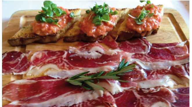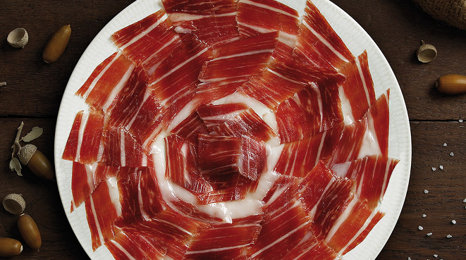 «De su degustación se puede apreciar un delicado y prolongado paso de boca y un aroma perfectamente balanceado. De su color podemos decir que va del rosa al rojo púrpura apreciándose el fino veteado de su apreciada grasa que le proporciona un aspecto marmóreo, gran jugosidad y fina textura».