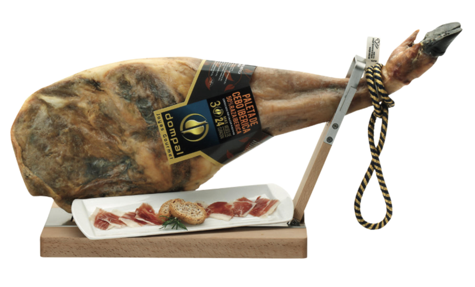 Baja en punto de sal, de alta calidad y con más de 24 meses de curación, estas son algunas de las características de esta paleta de cebo ibérica, que procede del cruce de cerdos 100% ibéricos y cerdos de la raza Duroc, procedentes de ganaderías de la sierra de Huelva. Todo ello le confieren a estas paletas cierto grado de infiltración de grasa a nivel muscular. «Ha tenido una alimentación a base de piensos y cereales de alta calidad y su cría se realiza en el interior de la granja. Corresponde a las extremidades delanteras del cerdo ibérico», explican desde Dompal, proveedor de este producto.