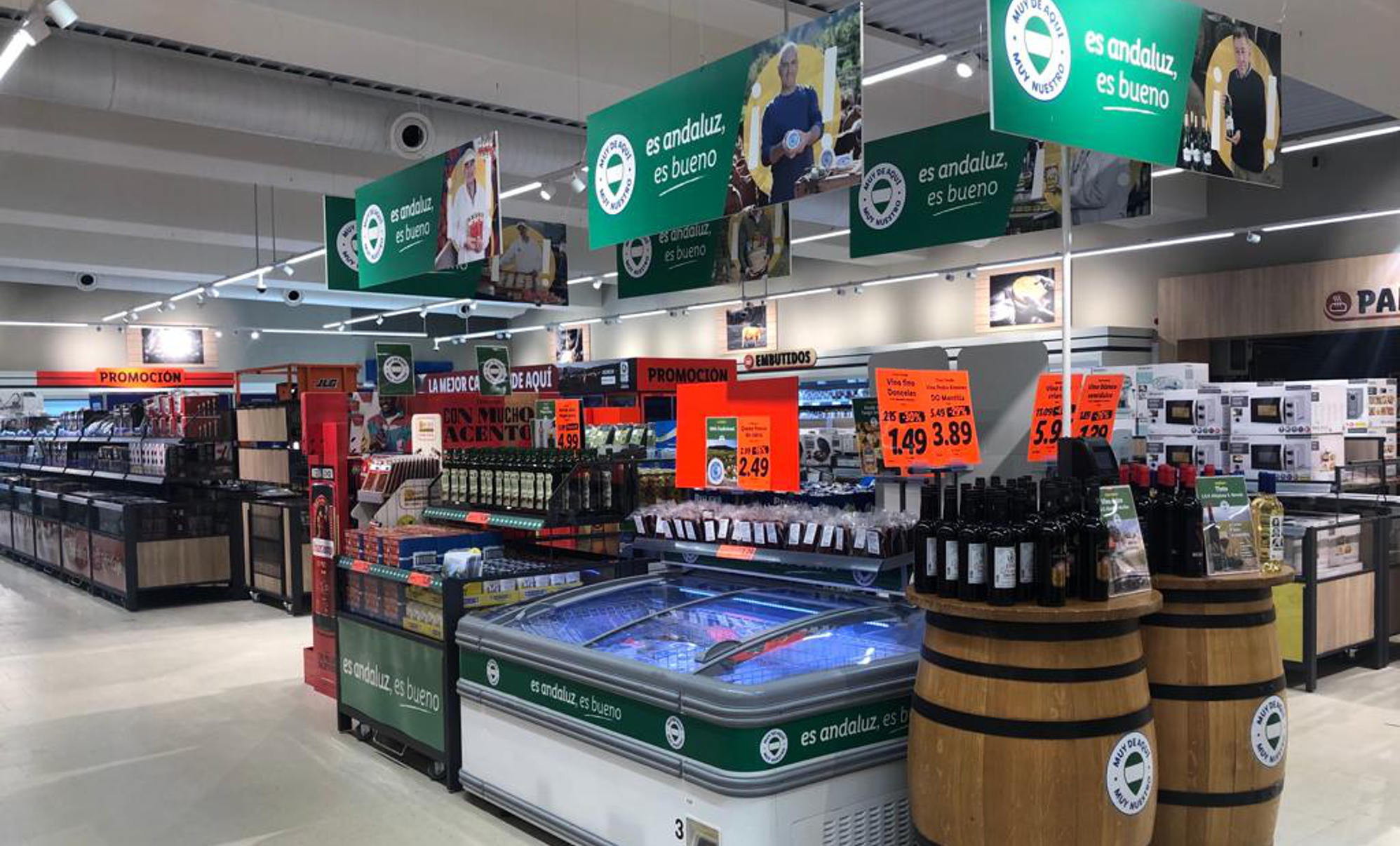 En su apuesta para seguir contribuyendo al desarrollo de la industria agroalimentaria andaluza, recientemente ha puesto en marcha una iniciativa para impulsar el consumo de productos locales bajo el sello «Es andaluz, es bueno». Así, se podrán identificar fácilmente en sus tiendas en Andalucía los artículos de la tierra.